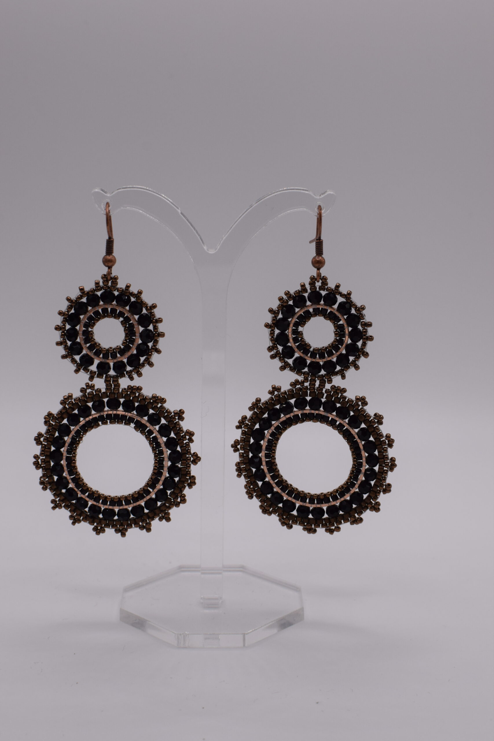 Runde zweiteilige Ohrringe mit Glasperlen, Messingrahmen und Messinghaken, Farbe Antik Kupfer