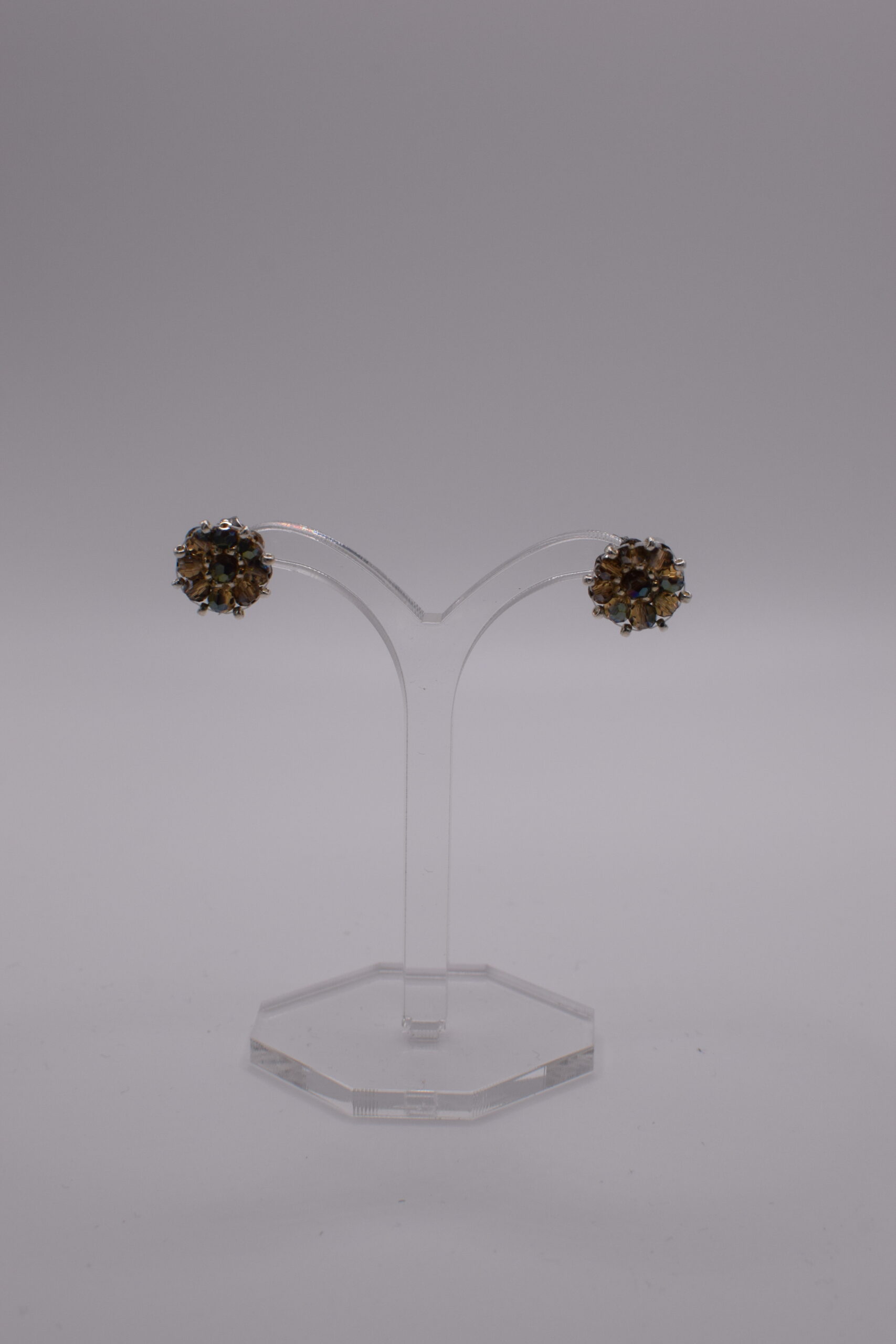 Stecker mit petrolbraunfarbenen und goldenen Glasperlen, Stecker aus Edelstahl