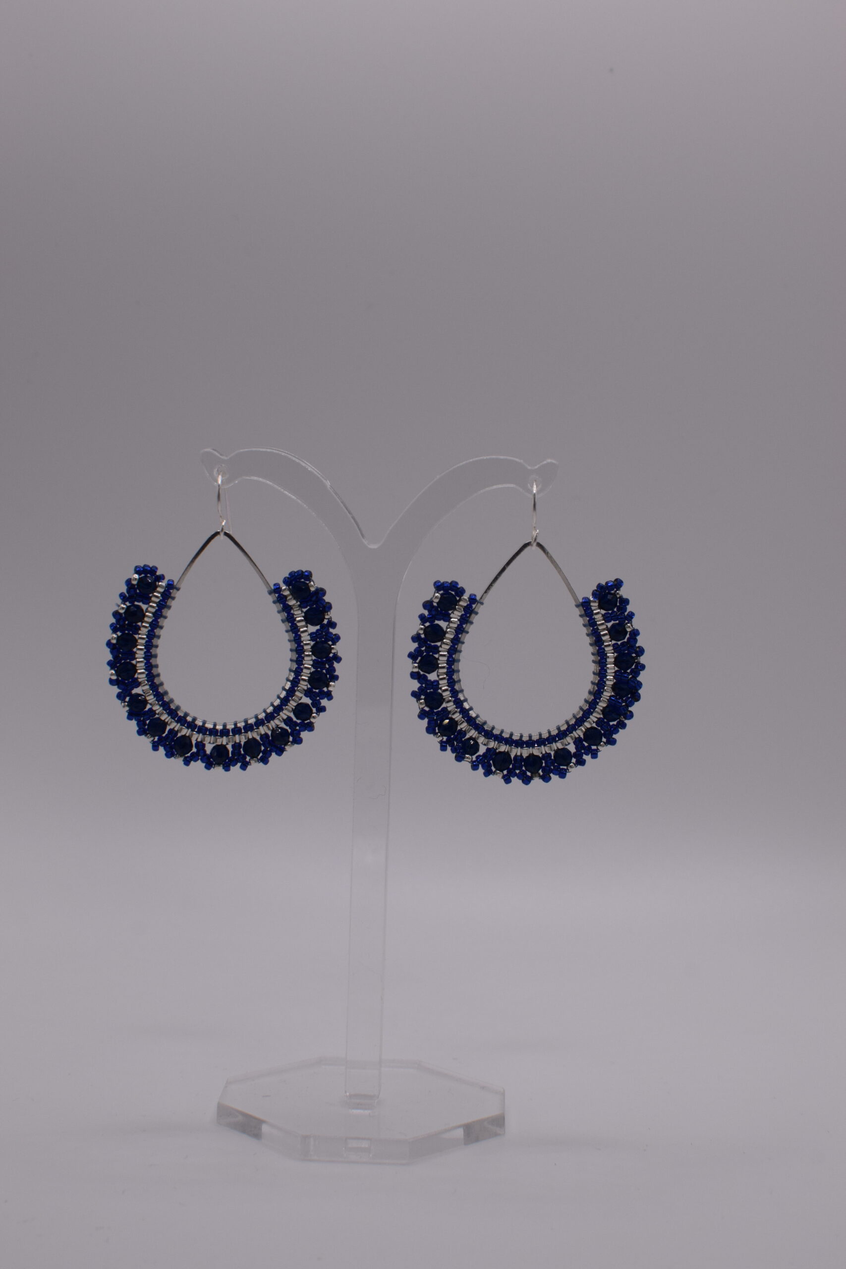 Tropfenförmige Ohrringe mit Glasperlen, Messingrahmen und Ohrhaken 925 Silber