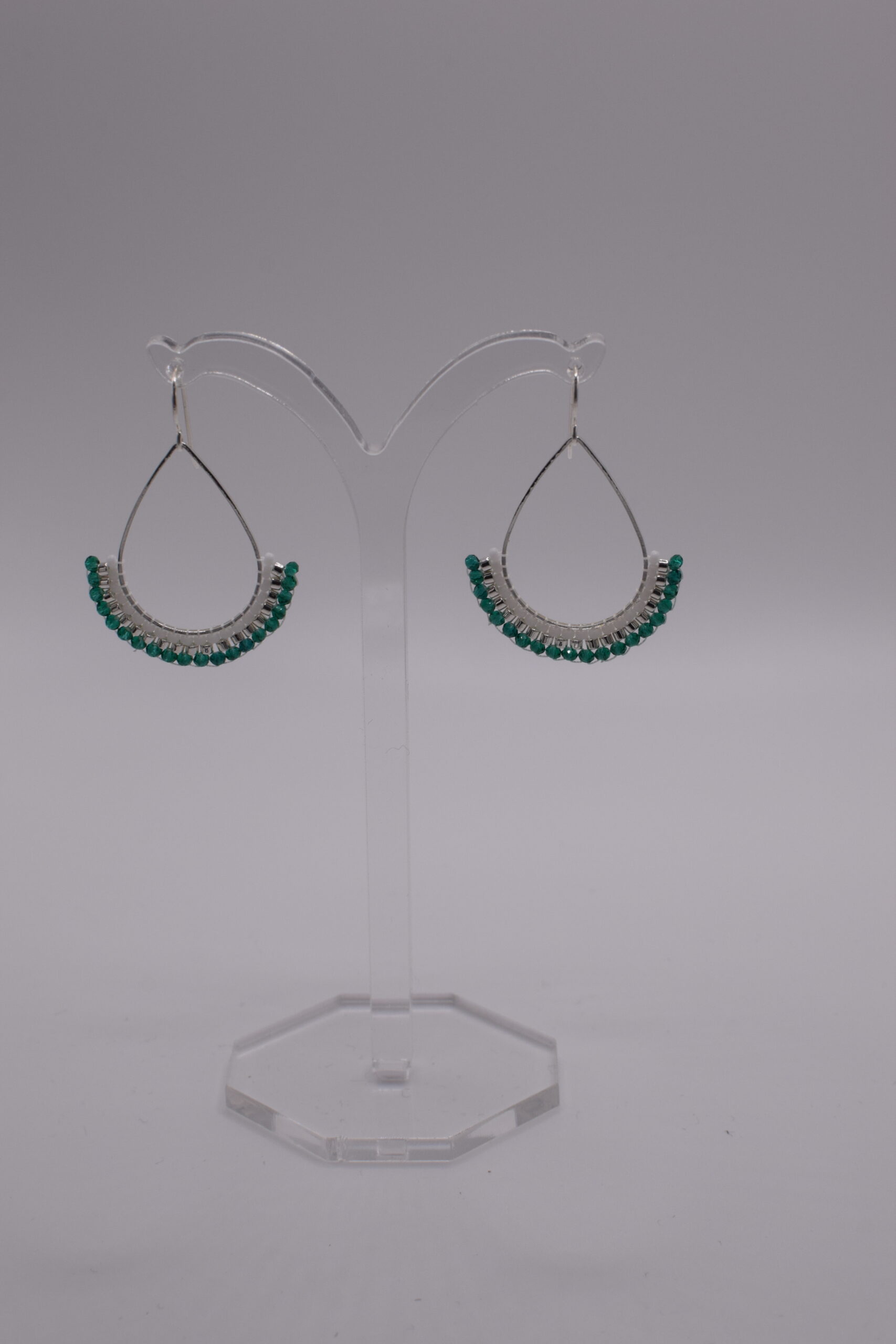 Tropfenförmige Ohrringe mit Glasperlen, Messingrahmen und Ohrhaken 925 Silber